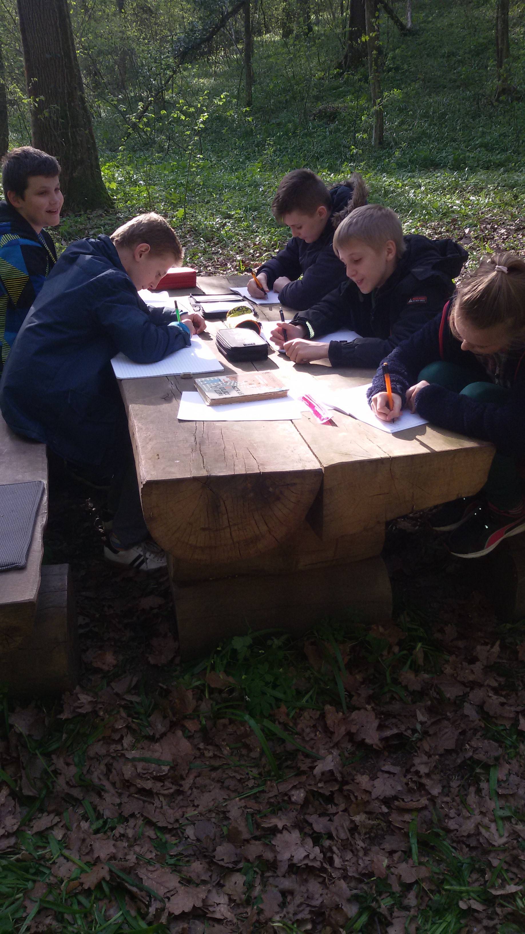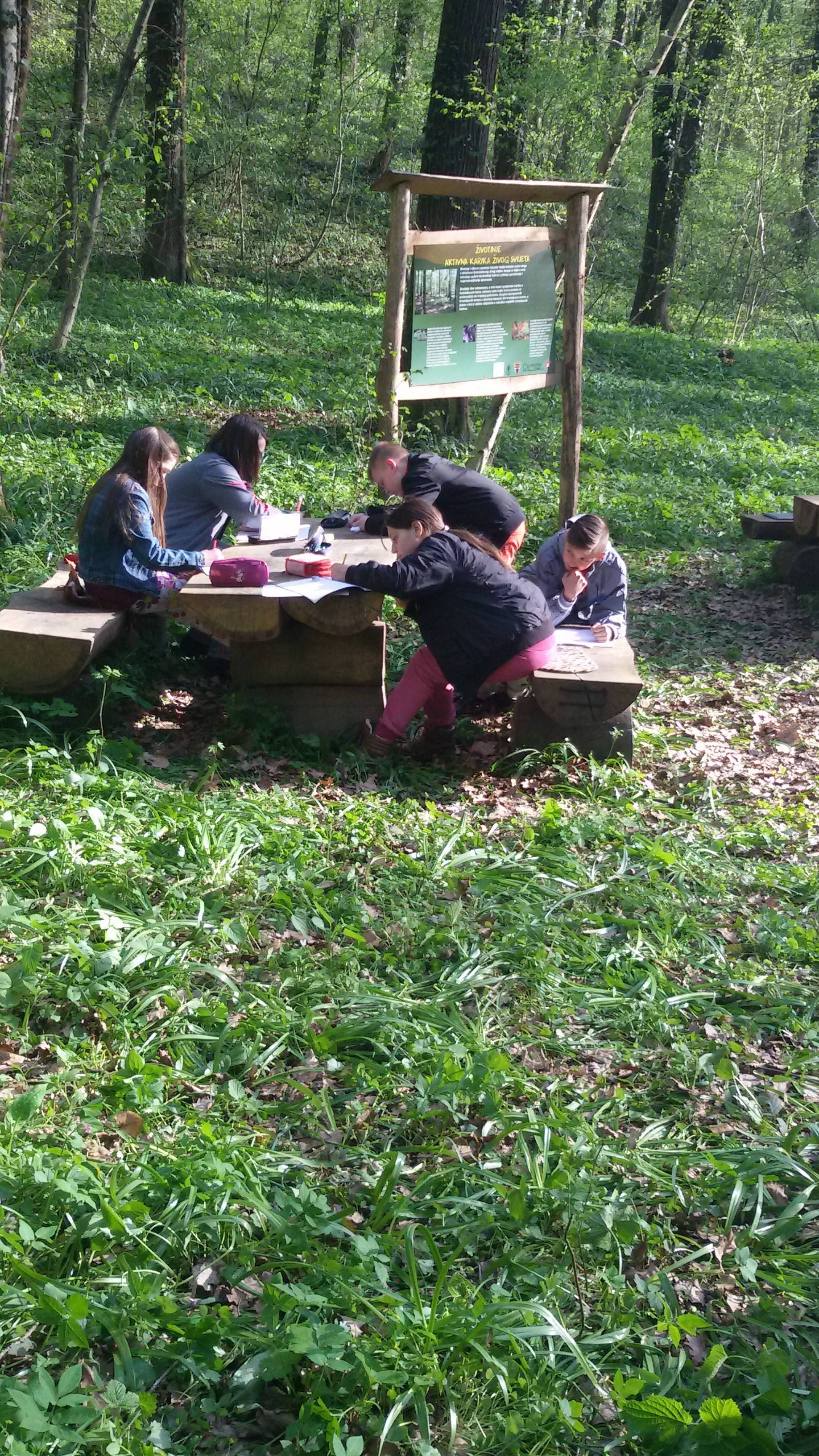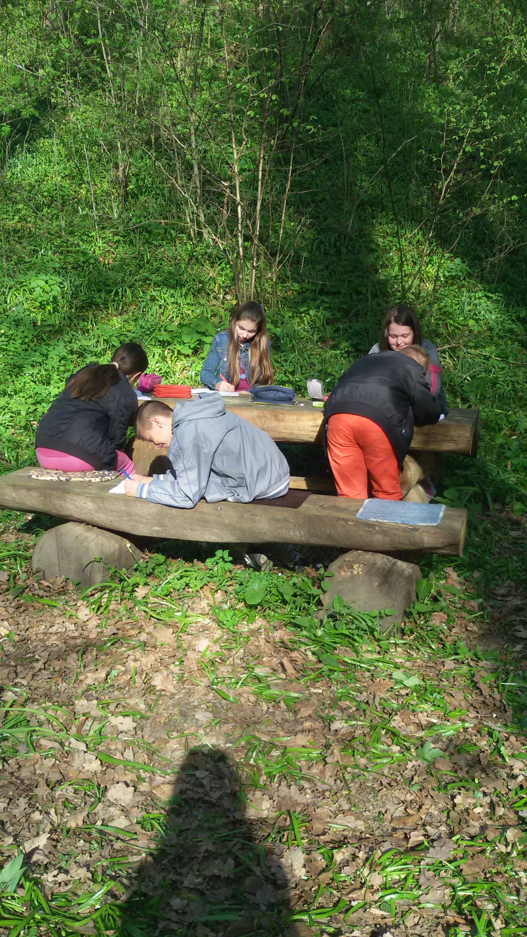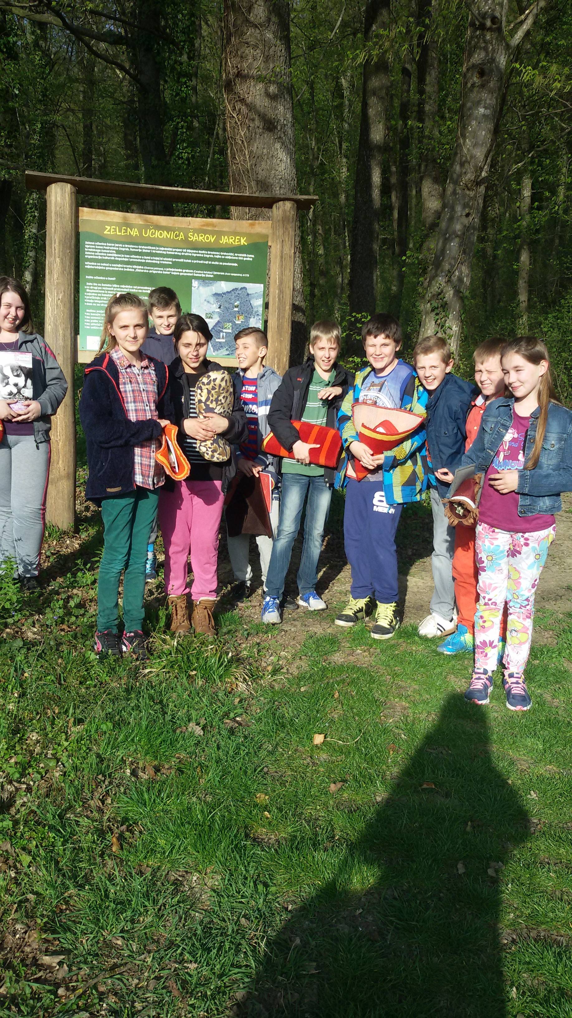Sunčano vrijeme početkom tjedna izmamilo je učenike petih razreda u prirodu. U ponedjeljak je (4. travnja 2016.) nastava Hrvatskog jezika održana u Zelenoj učionici. Šarov jarek usrećio je mnoge učenike, i to ne samo petaše, nego i one koji su uključeni u poludnevni boravak u našoj školi. Sreli smo ih putem te razmijenili nekoliko pohvalnih komentara o ovom hvalevrijednom projektu škole. Netaknuta priroda, zelenilo, sunce, vjetrić, pjev ptica i šum lišća podsjetili su učenike na važnost očuvanje prirode. Motivirani ovakvom okolinom, učenici 5.a posvetili su se interpretaciji lektirnog djela „Finka Fi“ autorice Maje Brajko-Livaković te prepoznali svijet koji je tako blizu našeg, a tako dalek, koji u sebi nosi pjev boja, dogovor sunca, neba i mora. Učenici 5.b zapitali su se što bi moglo narušiti ovakav sklad te prema romanu „Strah u Ulici lipa“ Milivoja Matošeca ostvarili vlastite literarne uratke.