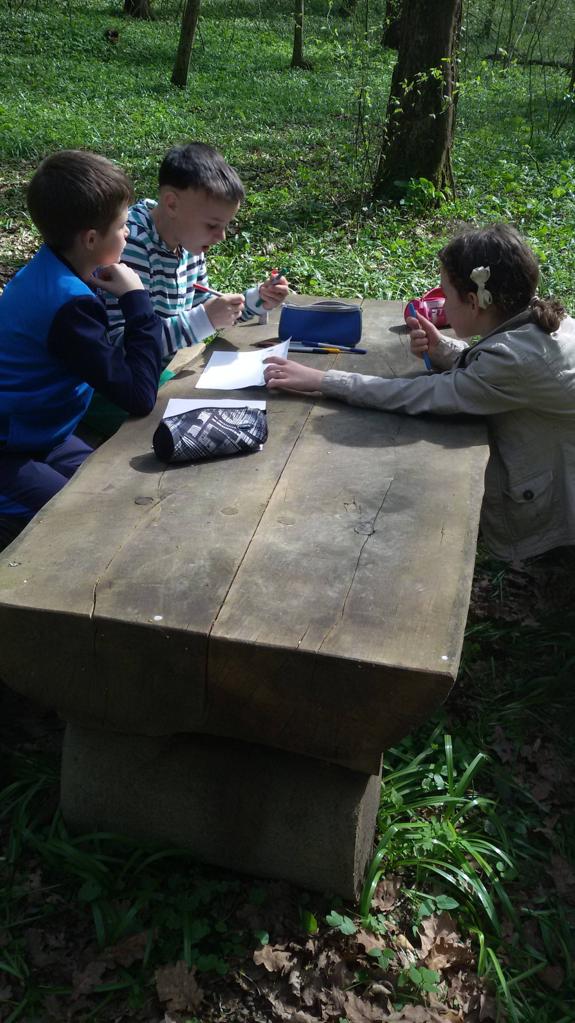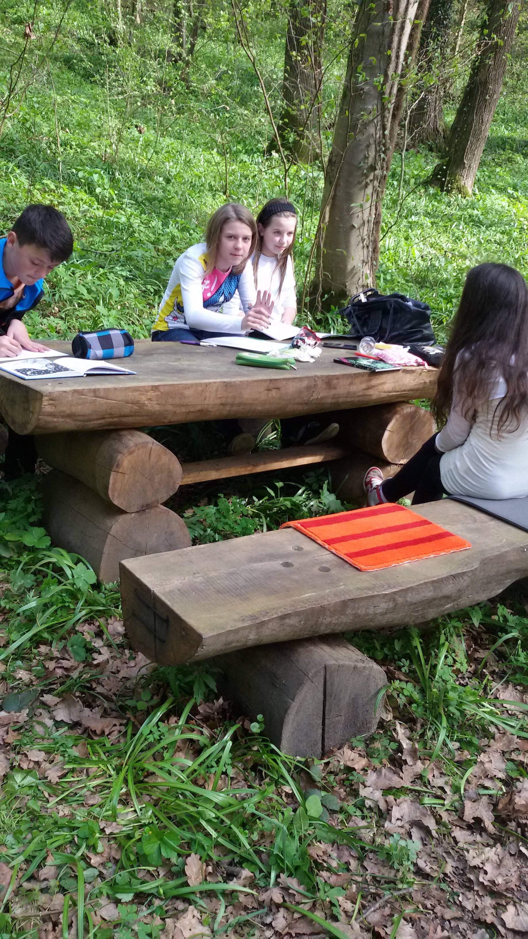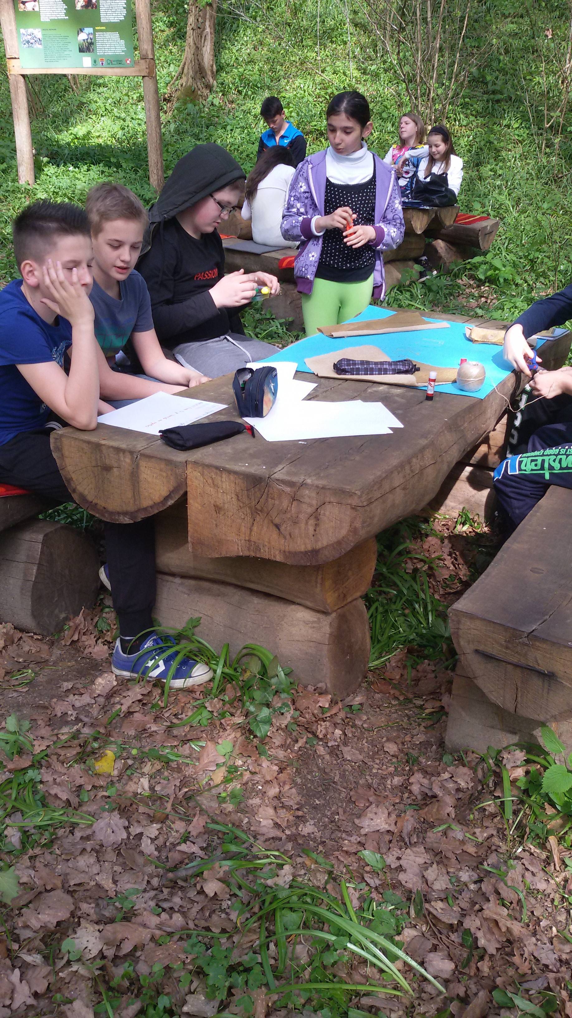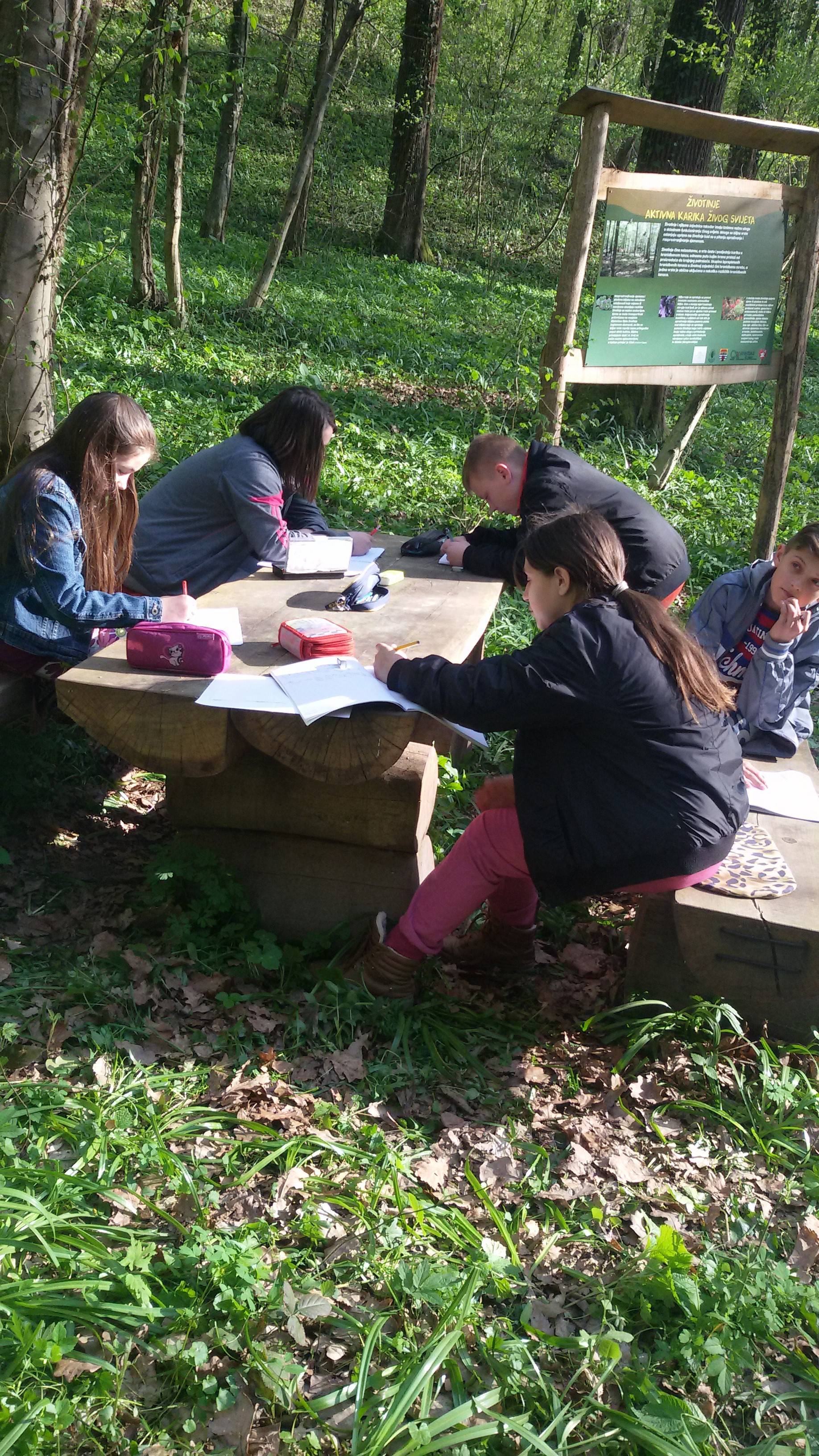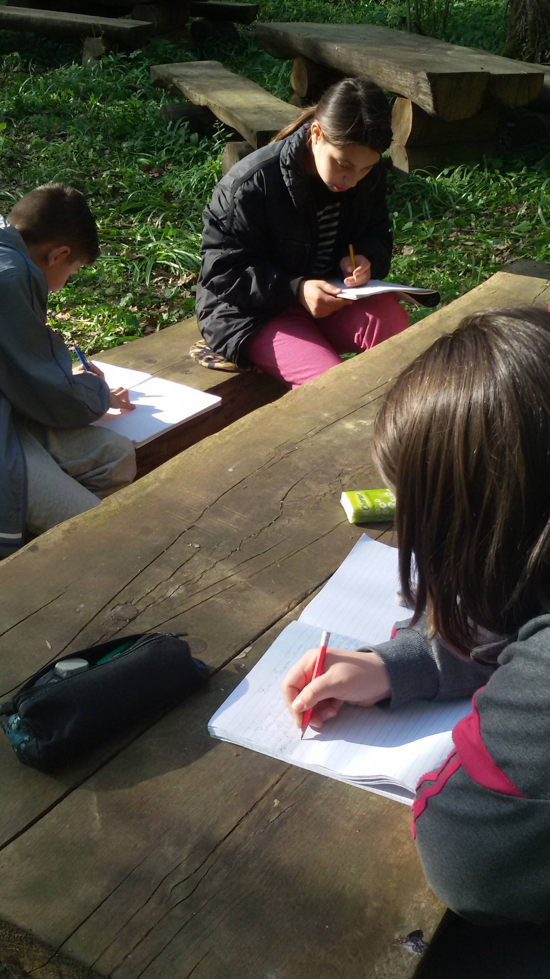 Sunčano vrijeme početkom tjedna izmamilo je učenike petih razreda u prirodu. U ponedjeljak je (4. travnja 2016.) nastava Hrvatskog jezika održana u Zelenoj učionici. Šarov jarek usrećio je mnoge učenike, i to ne samo petaše, nego i one koji su uključeni u poludnevni boravak u našoj školi. Sreli smo ih putem te razmijenili nekoliko pohvalnih komentara o ovom hvalevrijednom projektu škole. Netaknuta priroda, zelenilo, sunce, vjetrić, pjev ptica i šum lišća podsjetili su učenike na važnost očuvanje prirode. Motivirani ovakvom okolinom, učenici 5.a posvetili su se interpretaciji lektirnog djela „Finka Fi“ autorice Maje Brajko-Livaković te prepoznali svijet koji je tako blizu našeg, a tako dalek, koji u sebi nosi pjev boja, dogovor sunca, neba i mora. Učenici 5.b zapitali su se što bi moglo narušiti ovakav sklad te prema romanu „Strah u Ulici lipa“ Milivoja Matošeca ostvarili vlastite literarne uratke.