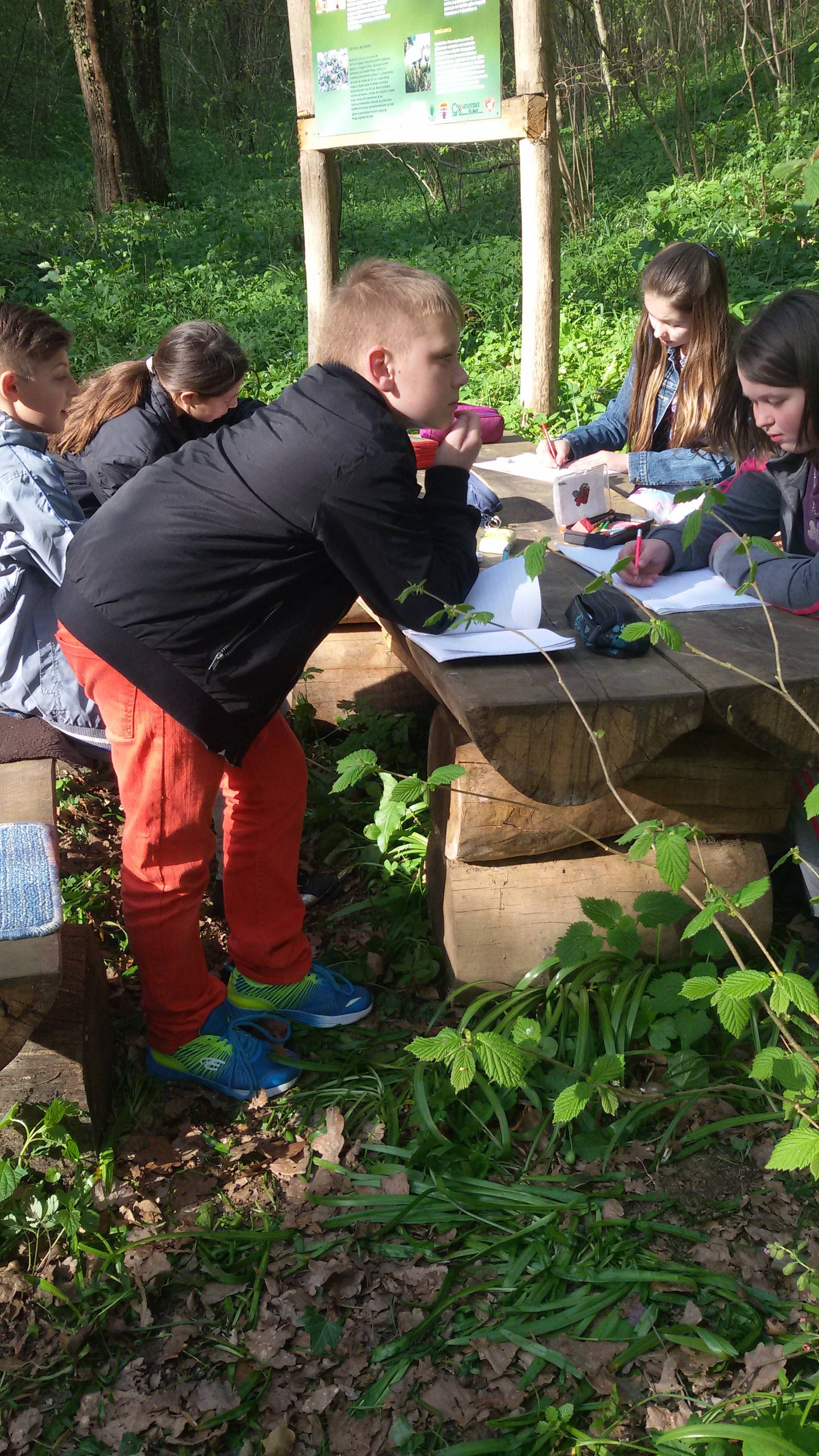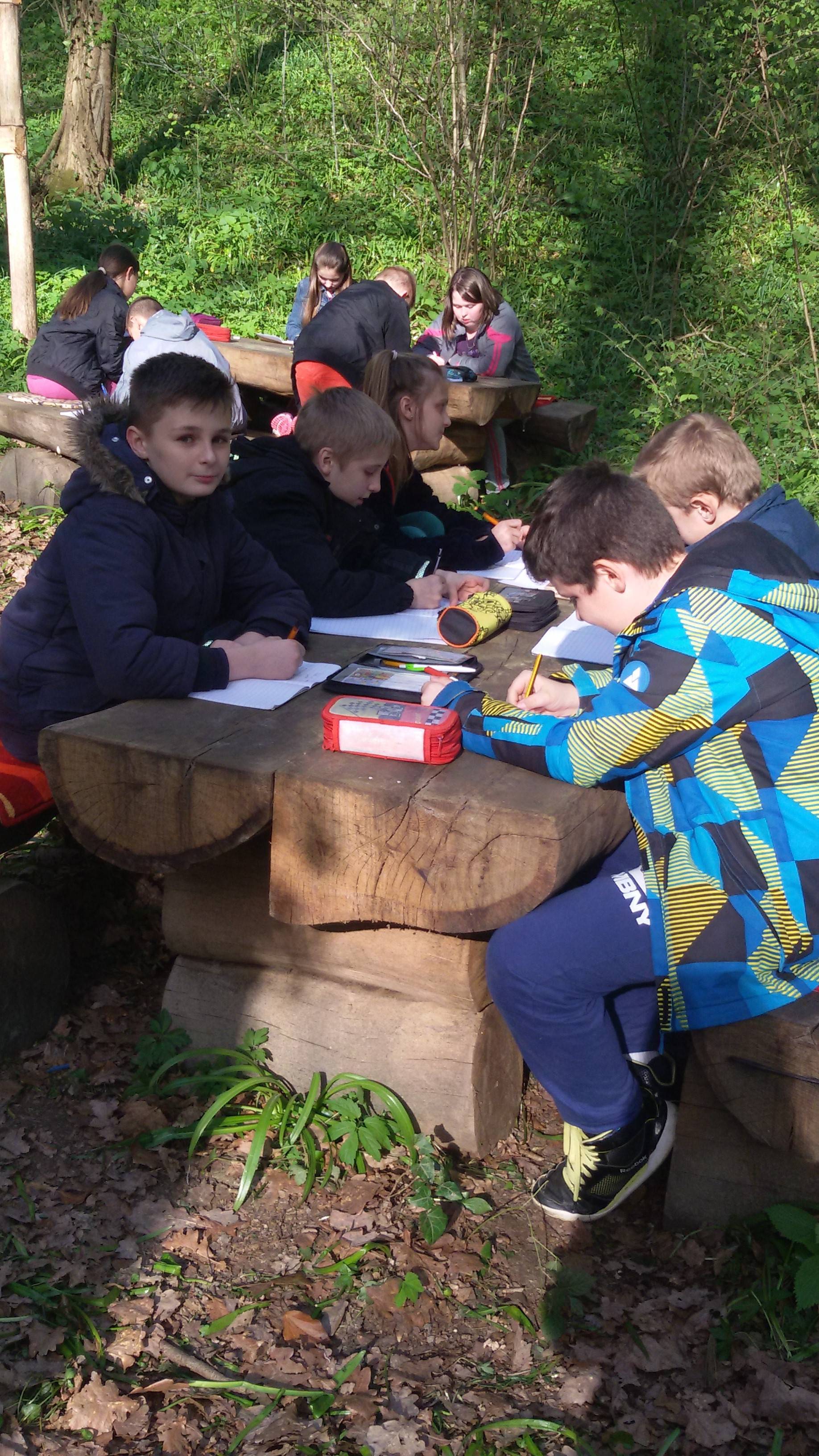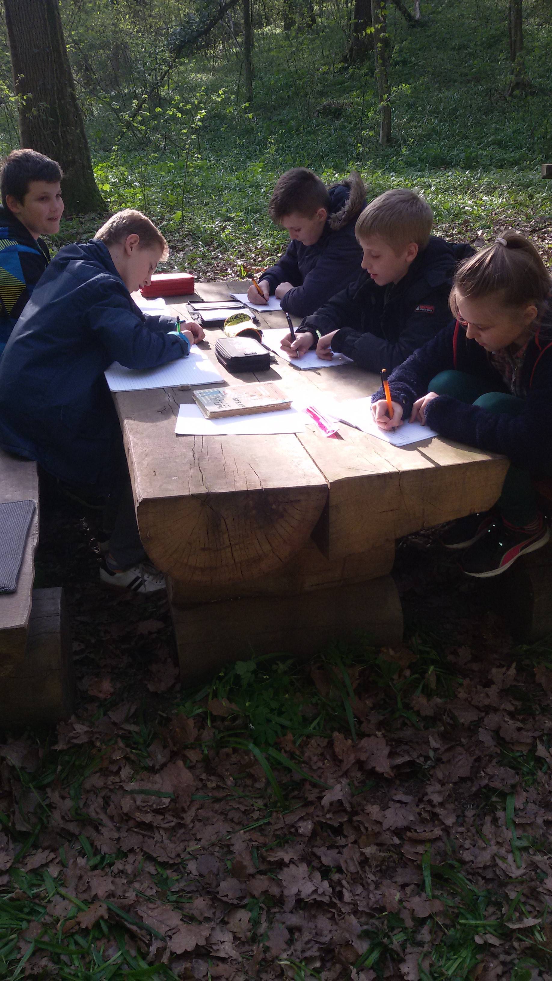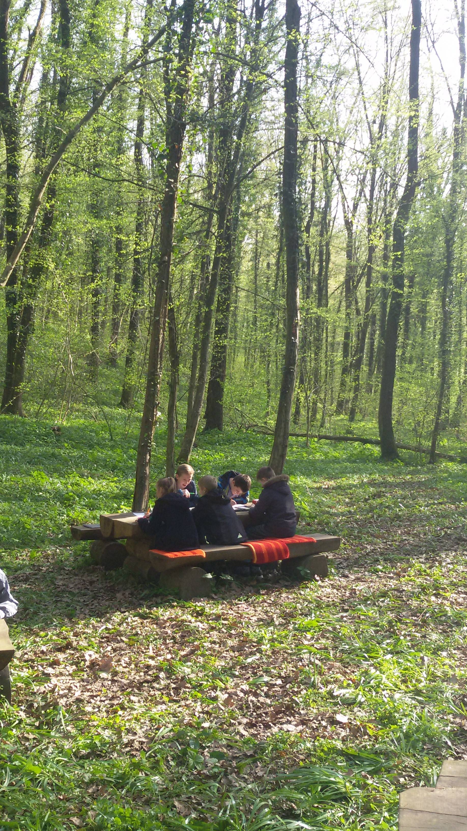 Sunčano vrijeme početkom tjedna izmamilo je učenike petih razreda u prirodu. U ponedjeljak je (4. travnja 2016.) nastava Hrvatskog jezika održana u Zelenoj učionici. Šarov jarek usrećio je mnoge učenike, i to ne samo petaše, nego i one koji su uključeni u poludnevni boravak u našoj školi. Sreli smo ih putem te razmijenili nekoliko pohvalnih komentara o ovom hvalevrijednom projektu škole. Netaknuta priroda, zelenilo, sunce, vjetrić, pjev ptica i šum lišća podsjetili su učenike na važnost očuvanje prirode. Motivirani ovakvom okolinom, učenici 5.a posvetili su se interpretaciji lektirnog djela „Finka Fi“ autorice Maje Brajko-Livaković te prepoznali svijet koji je tako blizu našeg, a tako dalek, koji u sebi nosi pjev boja, dogovor sunca, neba i mora. Učenici 5.b zapitali su se što bi moglo narušiti ovakav sklad te prema romanu „Strah u Ulici lipa“ Milivoja Matošeca ostvarili vlastite literarne uratke.