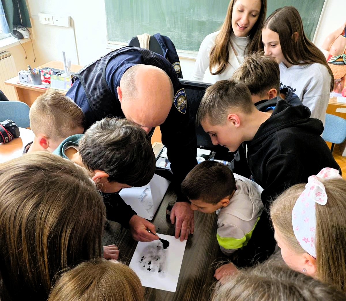 Policijska službenica Jurić je učenike upoznala s poslom kojeg radi te je pružila informacije kako mogu postati policajci/policajke. Viši kriminalistički inspektor Jembrih učenicima je ispričao kako se ponašati na mjestu zločina, što sve sadrži torba krim- tehničara te kako se uzimaju otisci prsta i dlana osoba.